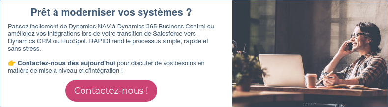 La migration des données de Dynamics NAV vers Business Central est gérable en utilisant la plateforme d'intégration de données de Rapidi ou par saisie directe.